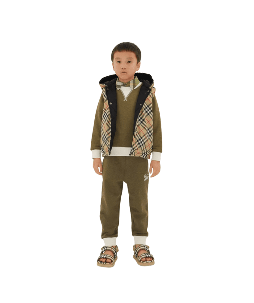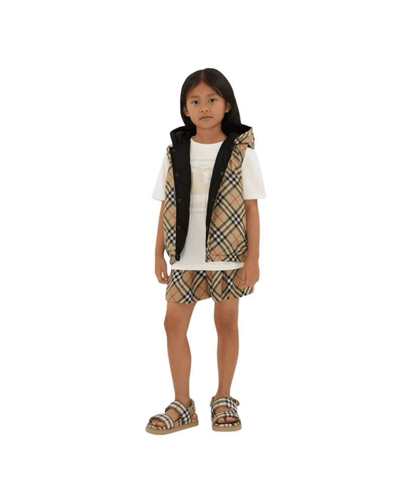 A pair of sandals in soft neoprene patterned with the Burberry Check.