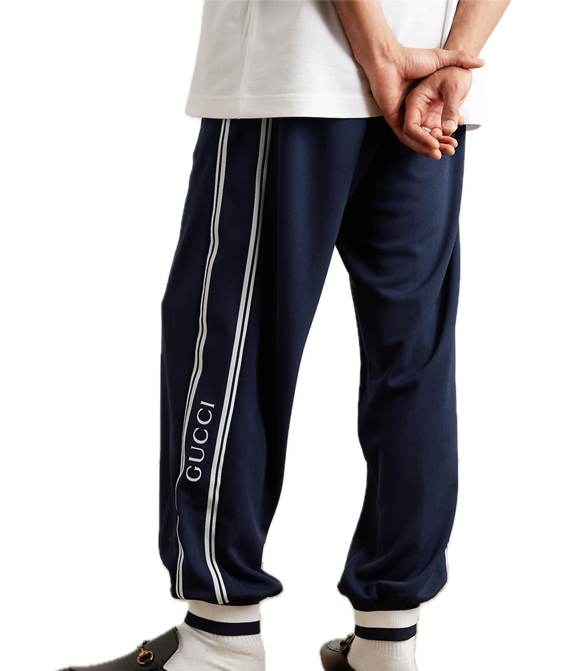 Gucci Tapered Logo-Print Striped Jersey Sweatpants