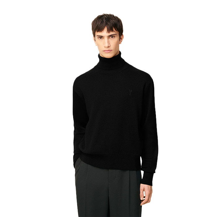 Black Wool Ami De Coeur Turtle Neck Sweater