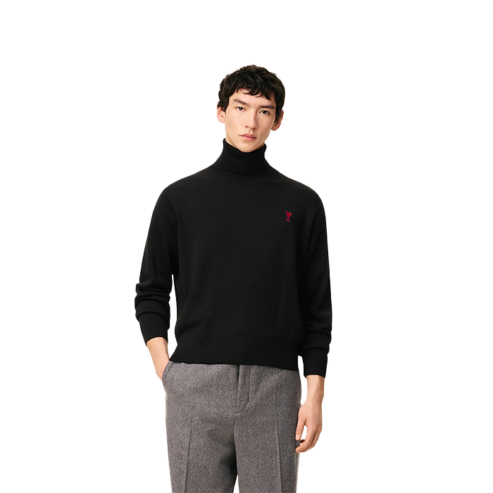 Black Wool Ami De Coeur Turtle Neck Sweater