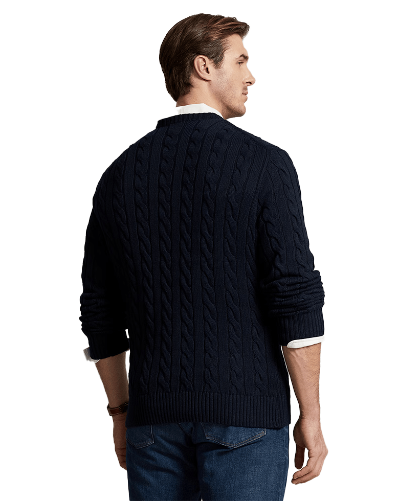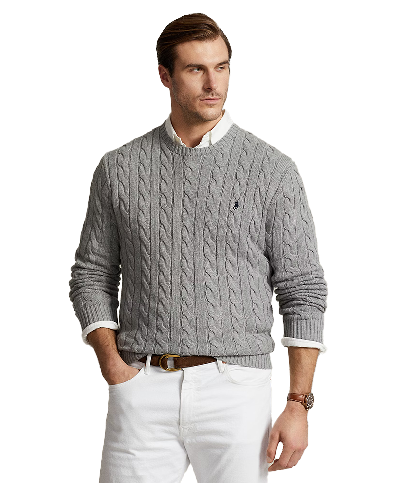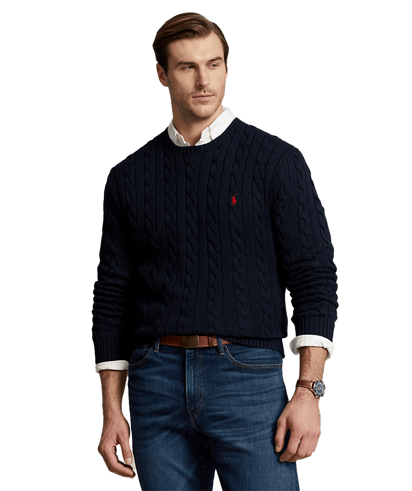 This Big & Tall cotton sweater combines two of Polo’s most iconic design details: a textural cable-knit motif and our signature embroidered Pony.