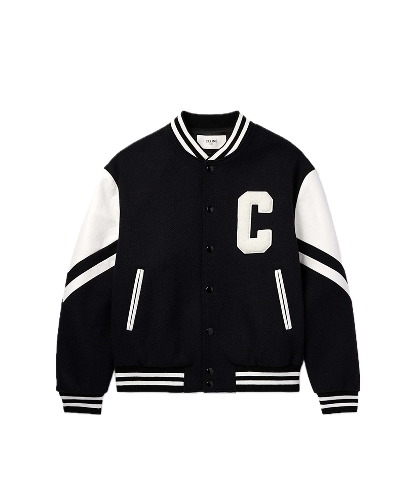 Celine Homme Logo-Apppiqueéd Virgin wool-blend and leather Varsity jacket