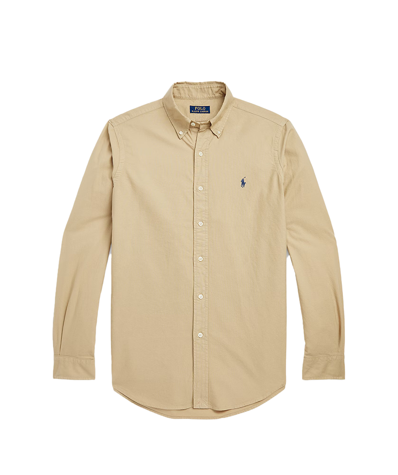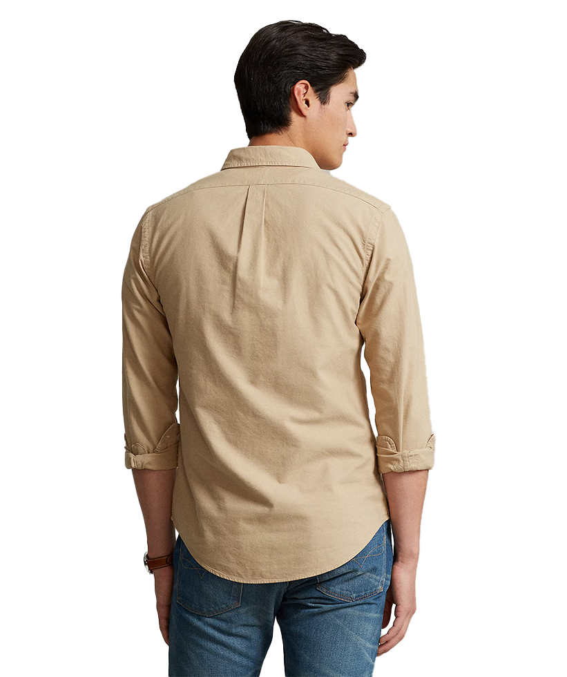 The oxford shirt made its debut very early on in Ralph Lauren’s designs, and since then it has solidified its status as a pillar of the Polo look. Our fabric is developed with a secret wash that gives it instant character, ease, and a heathered softness—what we call the perfect “rumple.” The formula is so unique, it’s been kept in a safe for more than three decades. Today, Mr. Lauren continues to create countless variations of his iconic shirt, including this garment-dyed version that is finished with our signature embroidered Pony.