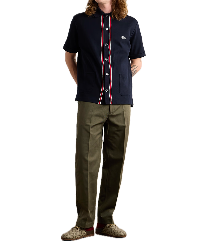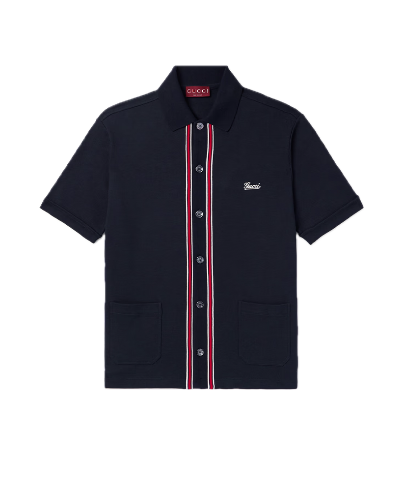 Gucci Logo-Embroidered Striped Cotton-Piqué Shirt