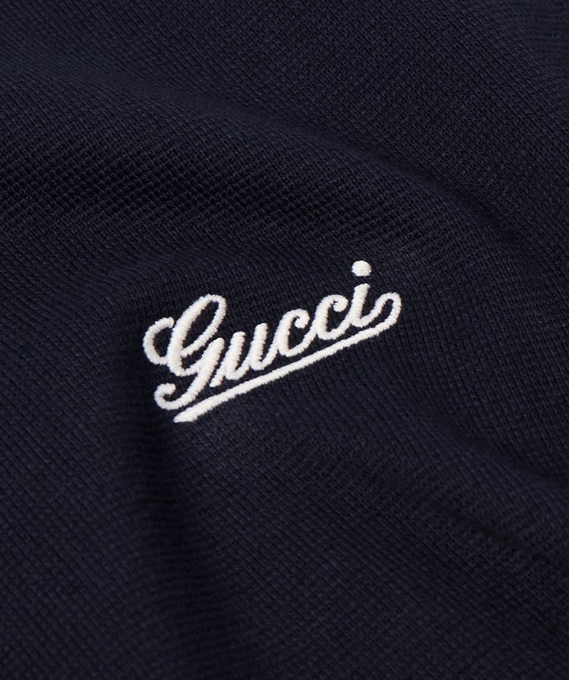 Embroidered with a scripted logo at the chest