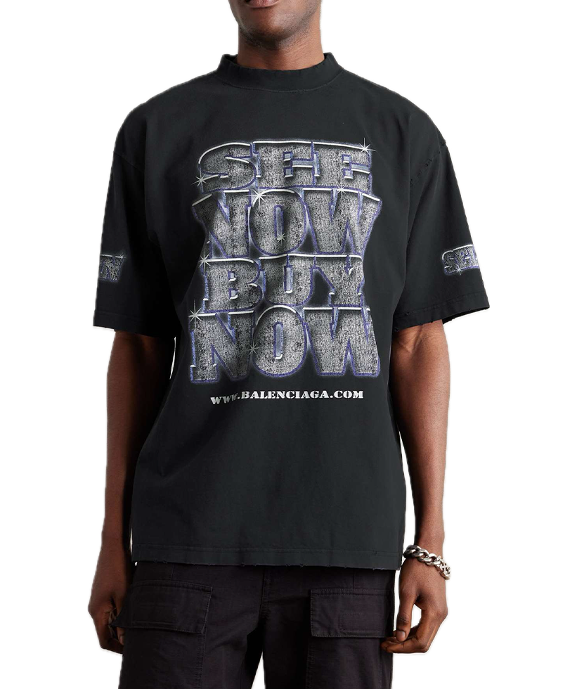 Balenciaga Logo-print Distressed cotton-Jersey T-shirt