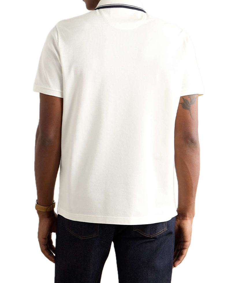 Breathable white and navy stretch-cotton-piqué