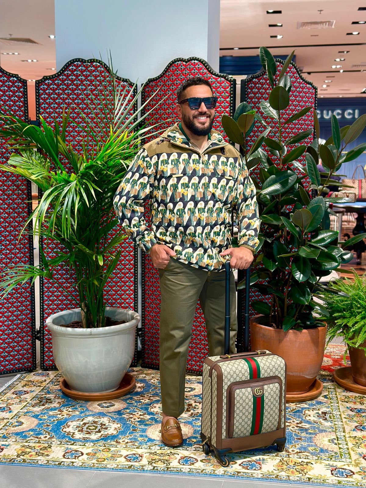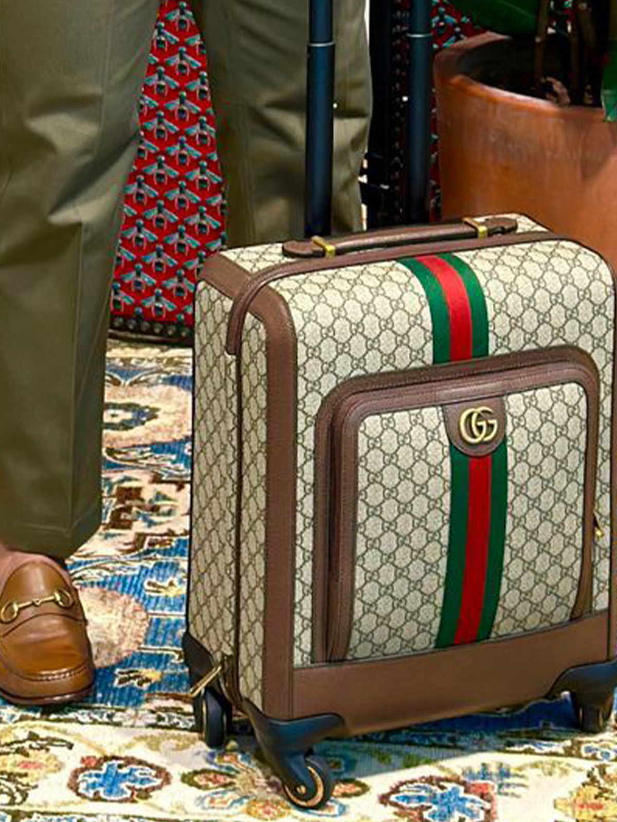 Imagine a fusion of timeless elegance with a modern twist: a crisp Gucci shirt, perfectly tailored to accentuate the eyewear, paired with sleek trousers that offer a contemporary yet classic appeal. The outfit is cinched together with a distinctive Gucci bag, adding a luxurious focal point, while the polished Gucci loafers provide a refined foundation. This ensemble is the embodiment of modern sophistication, designed to make a statement in any professional setting.