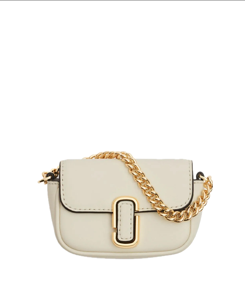 Marc Jacob’s signature J Marc Shoulder Bag is reimagined for AW23 as a nano leather charm, rendered here in ecru and featuring the iconic decorative chain.