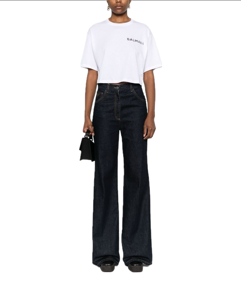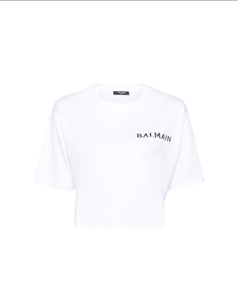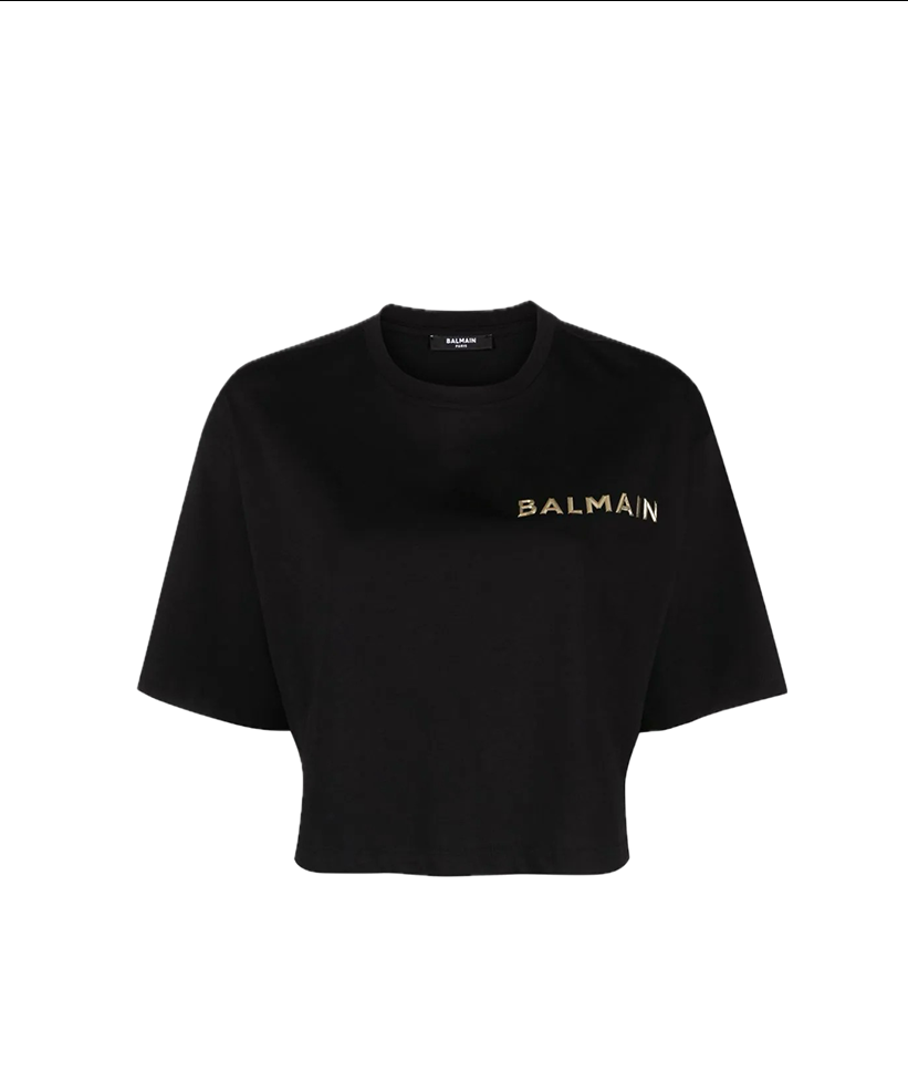 Balmain logo-appliqué cropped T-shirt
